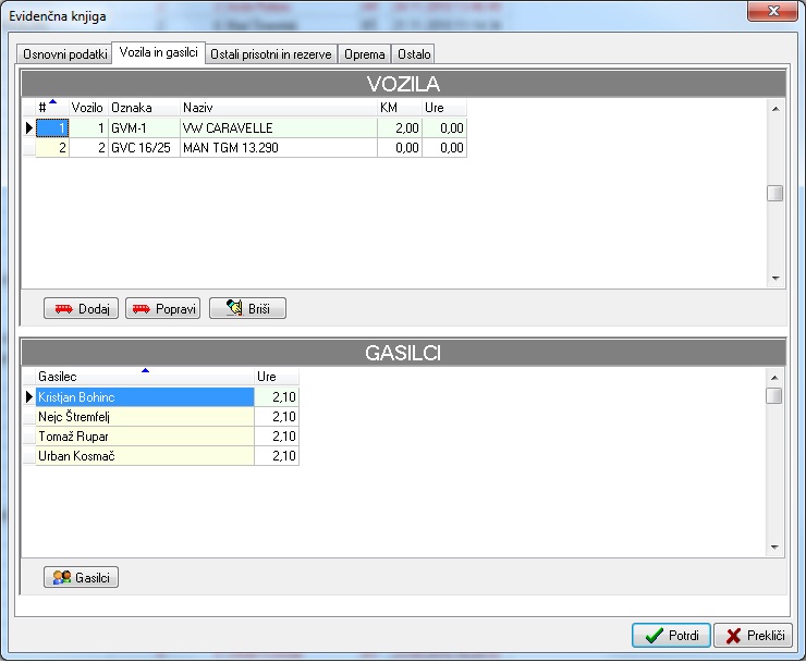 Za evidentiranje raznih del, vaj, intervencij, .... sem izdelal evidenčno knjigo