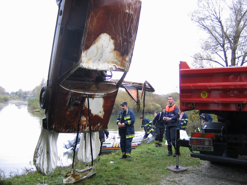 Iskanje vozil potopljenih v reki, iskanje morebitnih ponesrečencev, prikaz izvlečenja ponesrečencev iz vozil, postavitev pregrade iz absorbcijskih sredstev ter izvleka vozila iz struge.