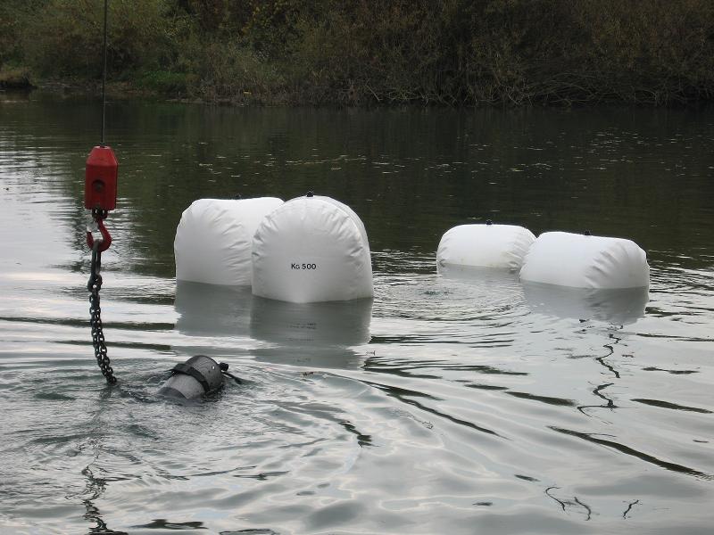 Zaradi varnosti, je lahko v času dvigovanja bremen, pod vodo naenkrat aktiven le en par potapljačev. Drugi (rezervni) par pa čaka v pripravljenosti na gladini v neposredni bližini nad deloviščem v smeri proti toku.