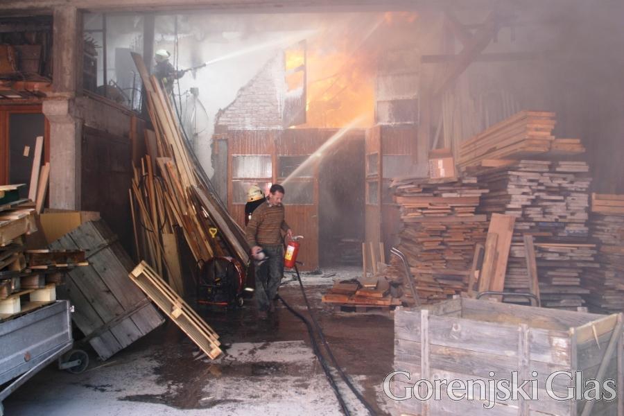 "Na kraju požara je okoli 100 poklicnih gasilcev iz Kranja, ki jim pomagajo tudi prostovoljni gasilci iz bližnjih krajev..."