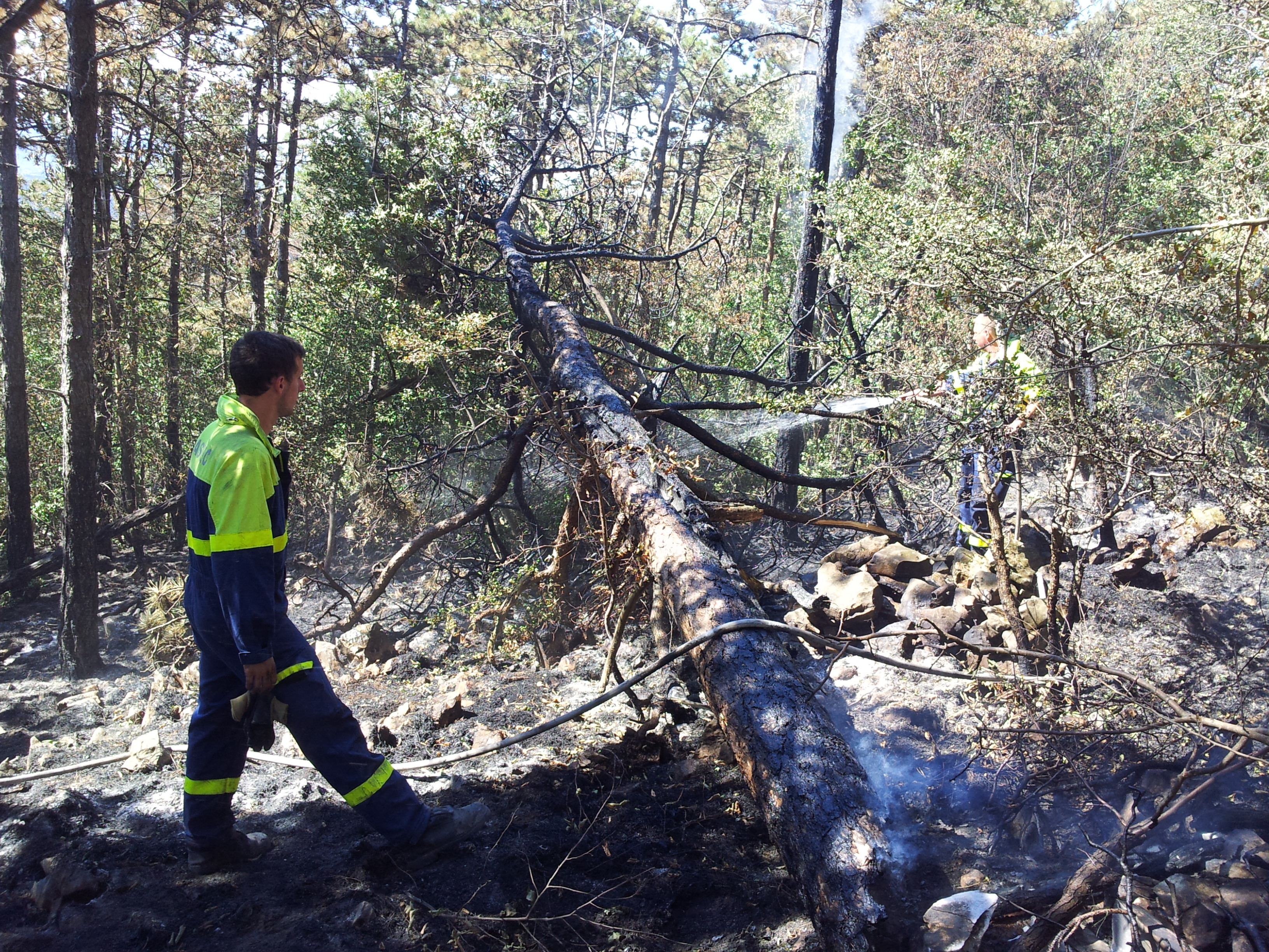 MIREN-KOSTANJEVICA, Ob 20.35 so gasilci PGD Kostanjevica na Krasu opazili še par žarišč na pogorišču požara na Trstelju.