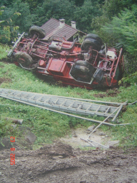 Saj smo podobno situacijo pred približno 15 leti doživeli z takratnim našim legendarnim Fapom (t.i. omara) v Renčah med potjo na intervencijo ko je gorelo gospodarsko poslopje..Šofer se je ina ozki cesti zognil vozilu ki je pripeljalo nasproti in se ni zmenilo za zvočne in svetlobne signale ter opozarjnaje z žarometi (najverjetneje je bil pod kakšnim vplivom)da bi preprečil trk je zapeljal na rob ceste ,le ta je popustila in vozilo je končalo na boku med soleto na bližnji njivi.Bilanca je bila poleg prevrnjenega in poškodovanega vozila med gasilci ena stisnjena roka med vozilom in zemljo ,1x zlomljena ključnica,nekaj nalomljneih reber in veliko modric in odgnin....