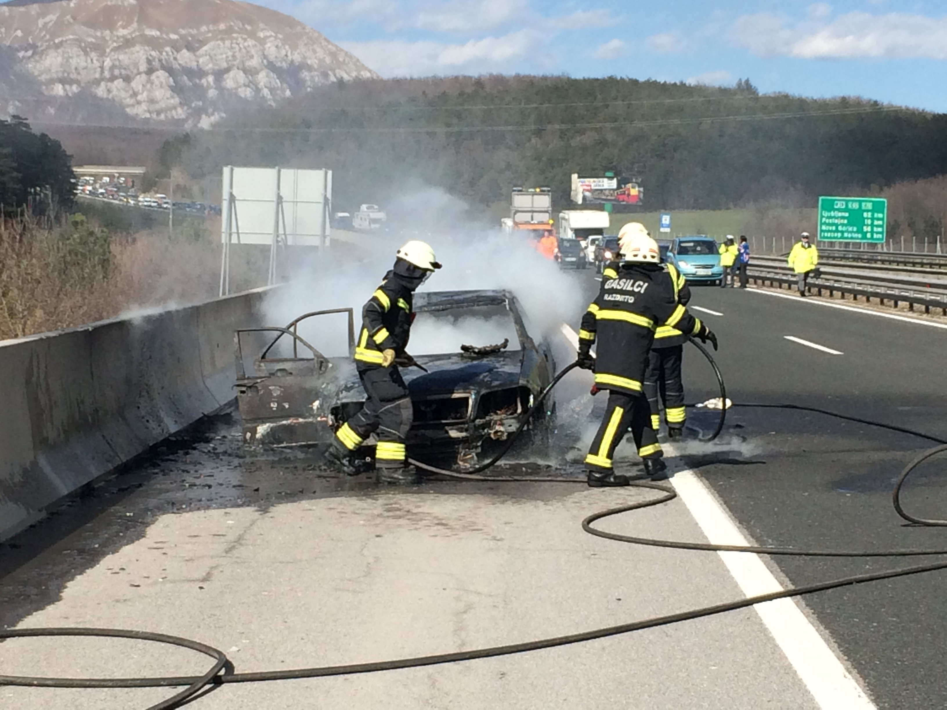 Včerajšnje gašenje osebnega vozila na AC Ljubljana - Koper pred izvozom za Senožeče.