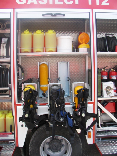 vsi štirje IDA aparati in rezervne jeklenke so zadaj v nadgradnji. Ko se je nabavljalo vozilo se je pač tako odločilo. Imamo pa v planu predelat, tako da bodo IDA aparati v kabini, ker imamo tam tudi laringofone in se bodo napadalci lahko komplet opremili v vozilu na vožnji na intervencijio.