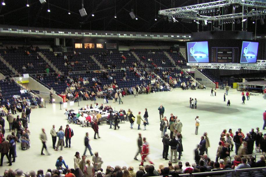 Ko smo prišli pred hotel nas je čakal avtobus in takoj so nas odpeljali nekaj ulic vstran oddaljeno športno dvorano.