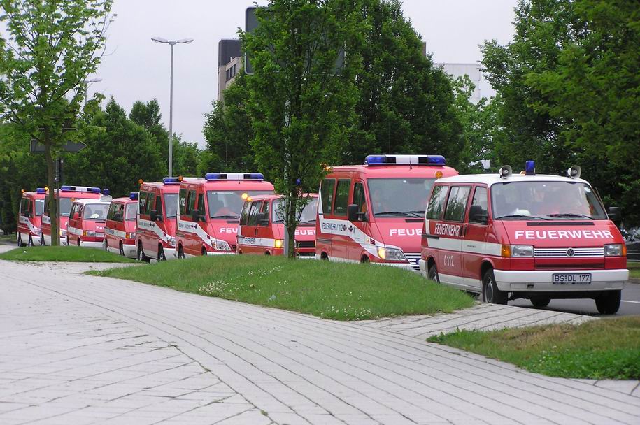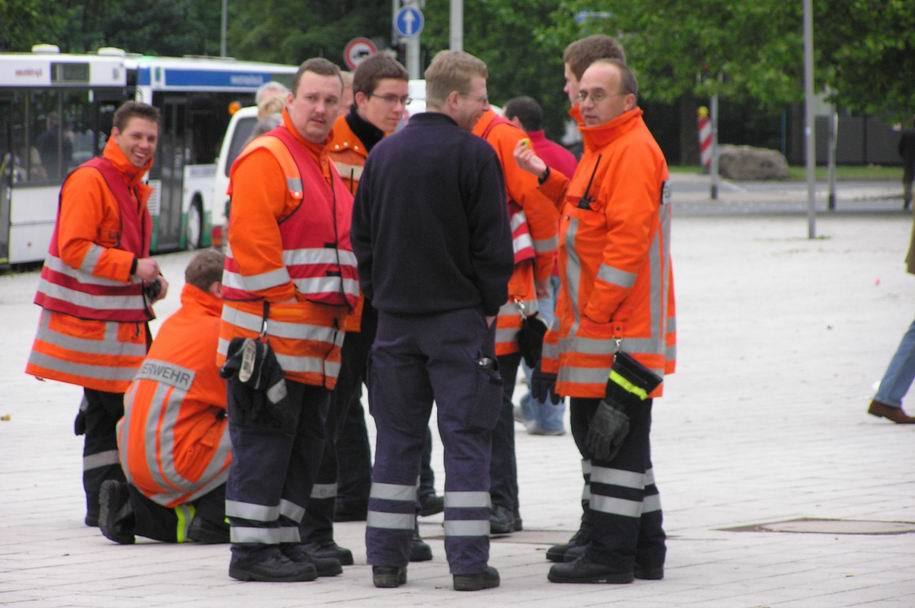 Drugi dan našega obiska Hanovra smo obiskali Poklicno gasilsko enoto HANOVER. Zelo lepo smo bili sprejeti, pokazali so nam postajo in opisali tudi njihov način delovanja. Kot zanimivost naj povem, da imajo v svojih prostorih celo gasilski muzej v katerem je na ogled ogromno zanimivih eksponatov iz zgodovine gasilstva. Letos je pri njih še posebej svečano saj praznujejo 125 let poklicnega gasilstva v mestu Hanover.Na to visoko obletnico opozarjajo na zanimiv način: v veliko trgovinah in blagovnicah je mogoče v izložbah videti rastavljeno gasilsko opremo. Tako smo obisk sejma in mesta Hanover zaključili v operativni enoti in iz prve roke izvedeli kako rešujejo in gasijo daleč na severu Evrope.=D>