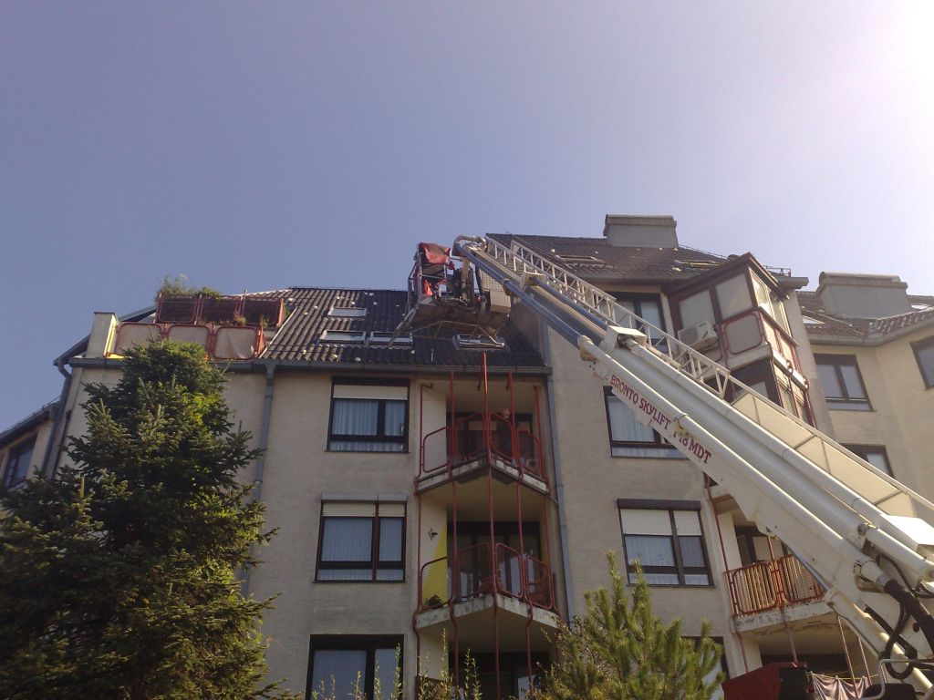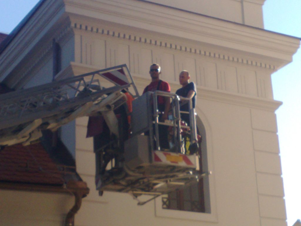 Četrta naloga, ki smo jo opravili je bila menjava opeke na več stanovanjski stavbi v centru mesta, kjer ni bilo veliko dela, saj je streha puščala "samo" nad enim stanovanjem, kjer sama živi starejša gospa in ji do našega prihoda nihče ni oz. ni imel možnosti pomagati. Zato smo, ko je bila opravljena ta naloga prejeli veliko zahvale od nje in njenih sosedov, ki živijo v tej stavbi tako, da človek res dobi občutek, da si naredil nekaj dobrega =D>