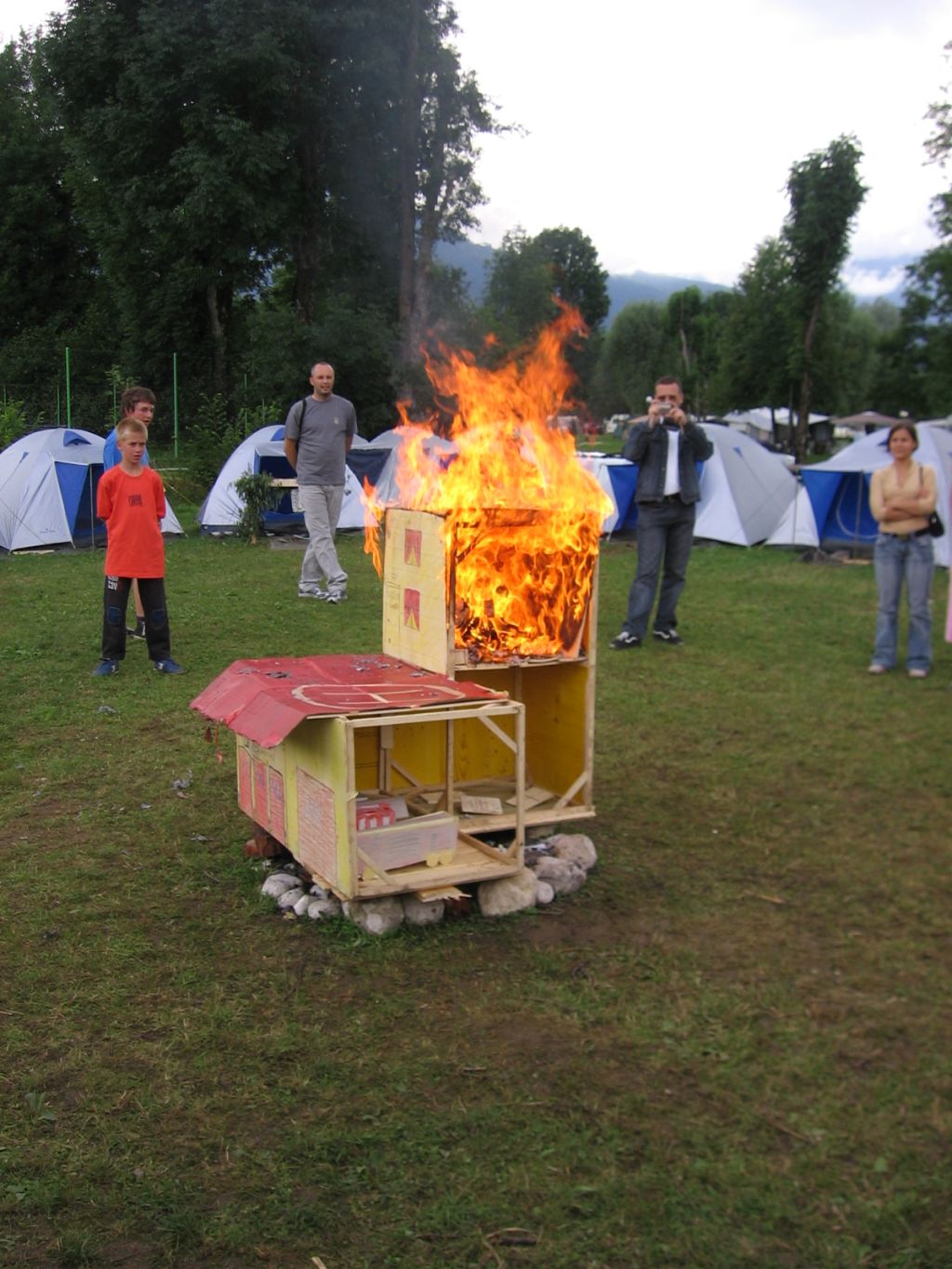 Že okrog 12.00 so se nam pridružili prvi starši, katerim smo pripravili zaključni program v balonu, ker se je pričakoval dež. Veliko otrok predvsem mlajših je odšlo že ta dan domov.