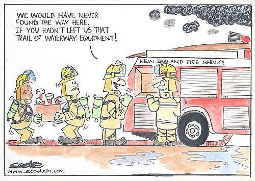 ... No, saj so bili veseli ... Pa so jim jih drugi gasilci pobrali.