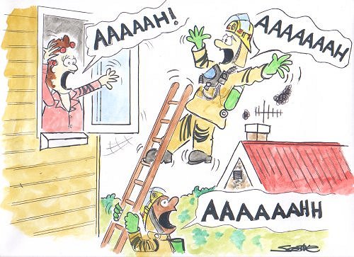 " Madona, a gremo z celo brigado na en osebni avto!" glasno razmišlja gasilec Mirko.